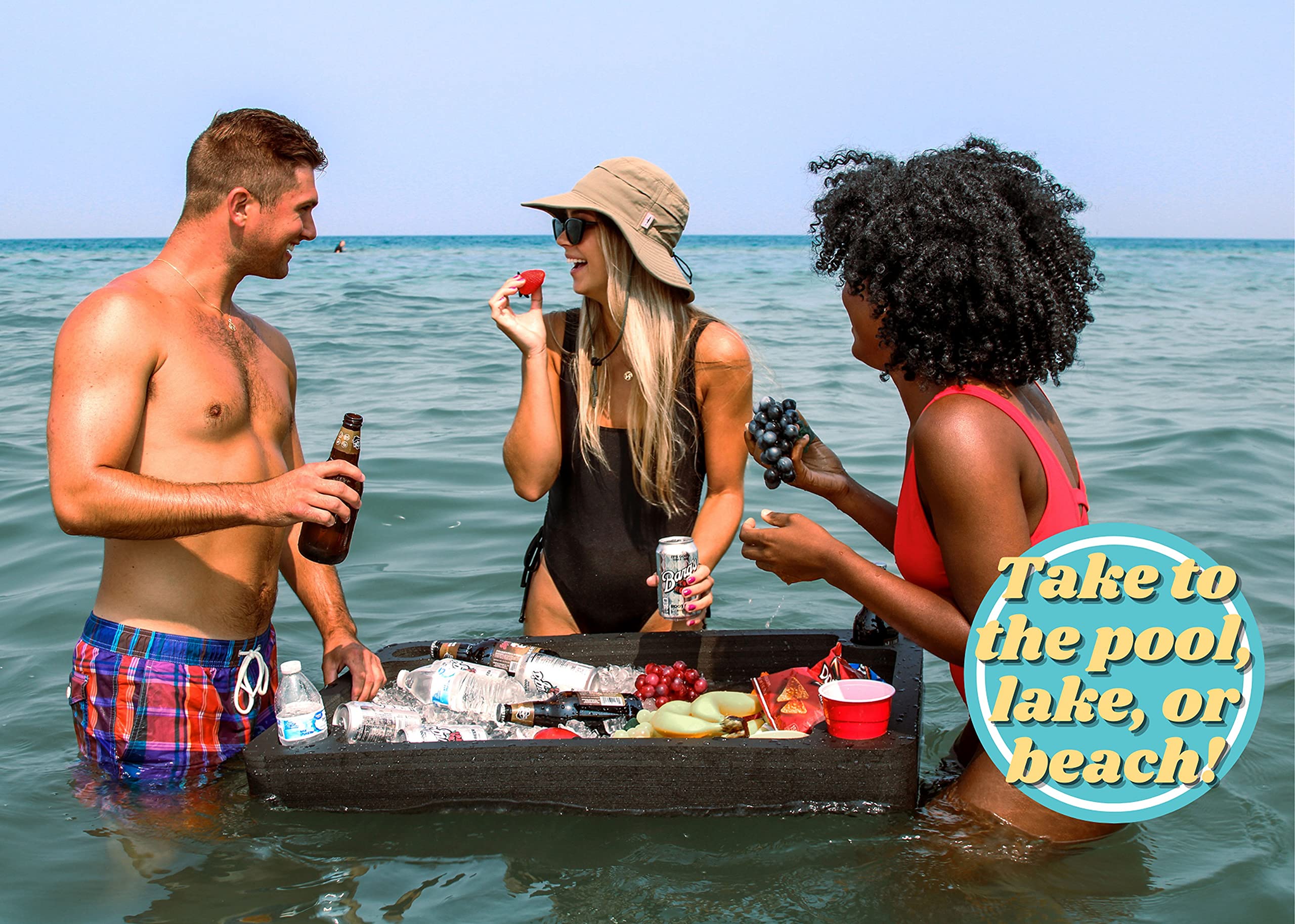 Polar Whale Extra Large Floating Bar Table Serving Buffet Tray Drink Breakfast Swimming Pool Beach Party Float Lounge Refreshment Durable Black Foam Uv Resistant With Cup Holders 36 Inches Wide Everything Else Amazon Com
